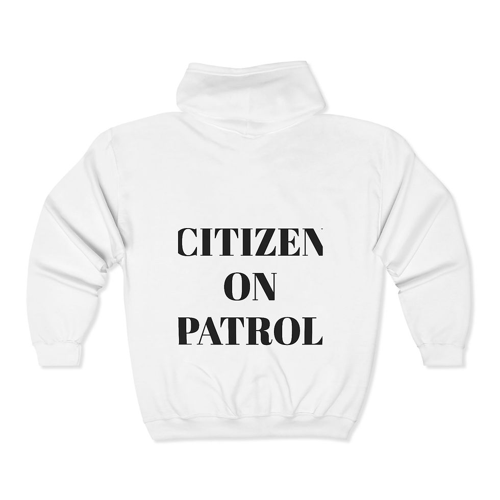 Citizen on Patrol Full-Zip Hoodie — Small Chest Patch & Back Slogan