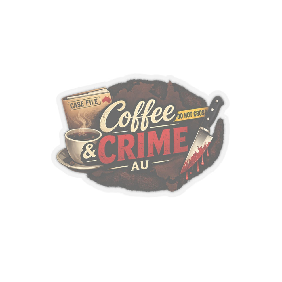 Coffee & Crime Kiss-Cut Sticker — True Crime Fan Laptop Decal